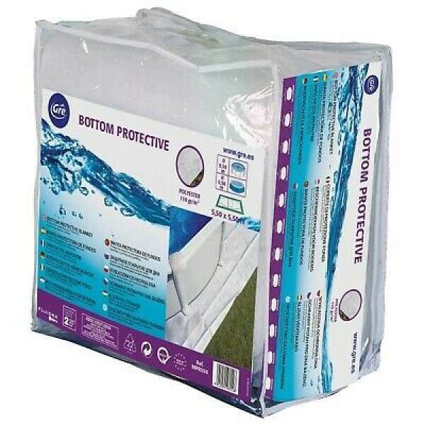 - Donji zastitna podloga izradjena od poliestera stiti dno bazena da ne bude u direktnom kontaktu sa podom. Razlicitih dimenzija odgovara celicnim, drvenim, kompozitnim i bazenima na naduvavanje. Podloga je bele boje i protivklizna je.