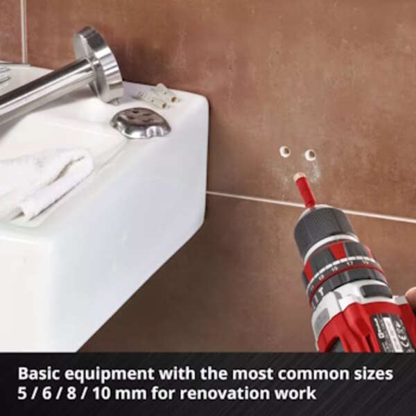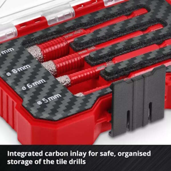 Einhell XS-CASE set dijamantskih burgija za keramiku E6.3-1/4" 4/1 49500404 je set visokokvalitetnih dijamantskih burgija koji su dizajnirani za bušenje u keramičkim materijalima.