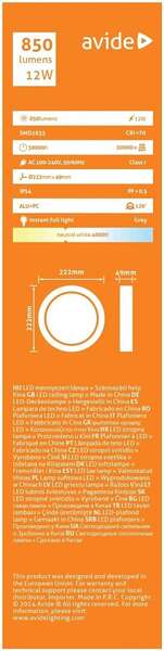 Lampa emituje neutralno belo svetlo (4000K) koje obezbeđuje dobru vidljivost i prijatan, prirodan ambijent. Sa snagom od 12W i svetlosnim fluksom od 850 lm, pruža ravnomerno i difuzno osvetljenje, bez neprijatnog zaslepljivanja. SMD LED tehnologija omogućava veću energetsku efikasnost i dug radni vek uz minimalnu potrošnju.